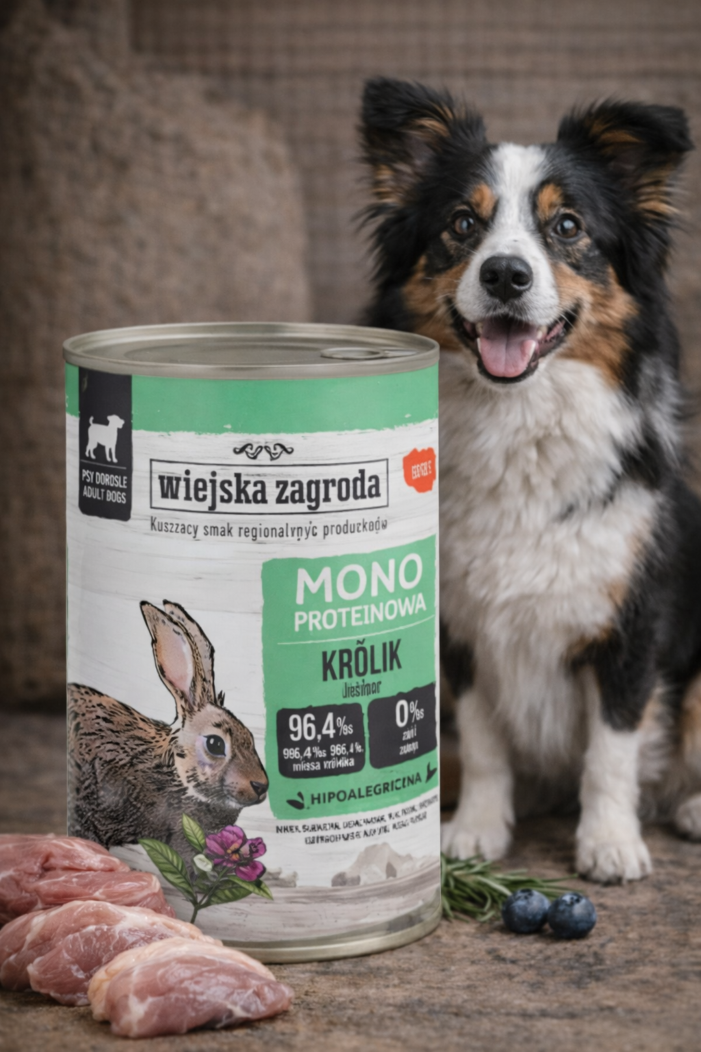 Pełnoporcjowa karma mokra MONO Królik to wysokiej jakości posiłek oparty na jednym źródle białka zwierzęcego – króliku. Dzięki prostej, przejrzystej recepturze doskonale sprawdzi się u psów i kotów z wrażliwym układem pokarmowym, alergiami oraz w dietach eliminacyjnych.