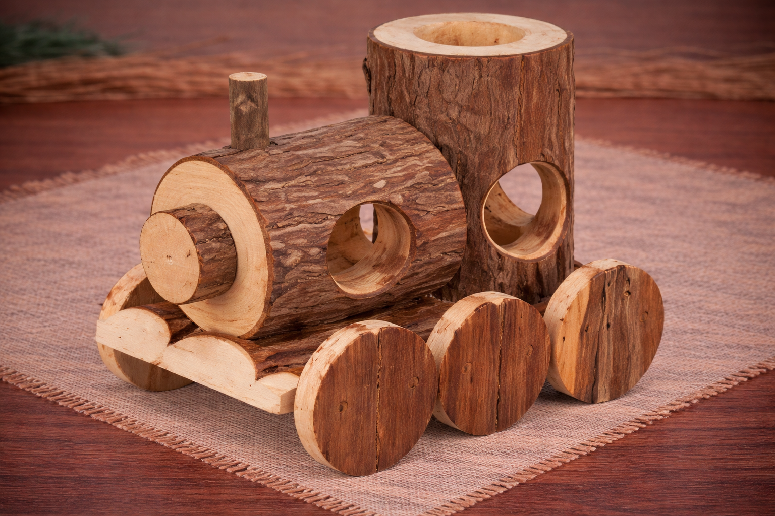 wykonany z naturalnego, niebarwionego drewna,